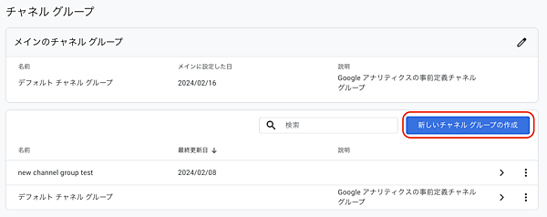 しかし、この「メインのチャネルグループ」という考え方・機能が登場したことにより、カスタムチャネルグループを「メインのチャネルグループ」に設定すると、いちいちプルダウン選択をする手間が省けるようになりました。