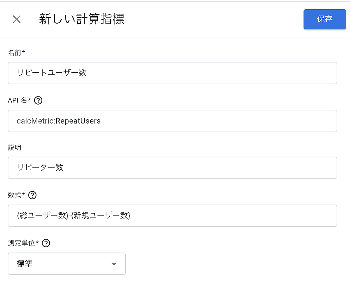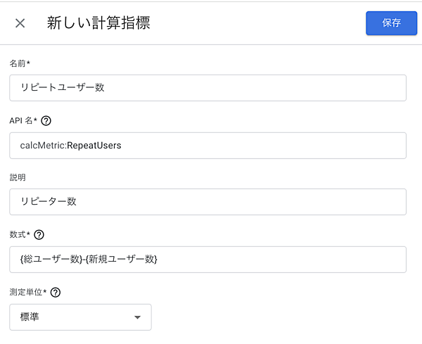 たとえば、GA4上には総ユーザー数(全ユーザーの数)と新規ユーザー数はありますが、リピートユーザー数という指標はありません。そこで、非常にシンプルですが「総ユーザー数-新規ユーザー数」という計算をすれば、新たな「リピートユーザー数」という指標を作成できます。