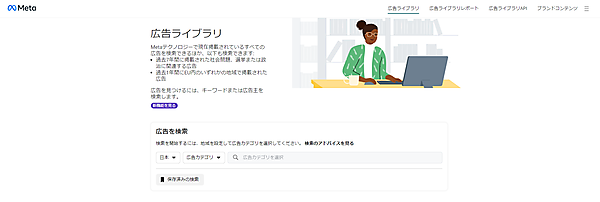 Metaが提供している公式ツールで「広告ライブラリ」があります。クリエイティブの参考にしてみましょう。