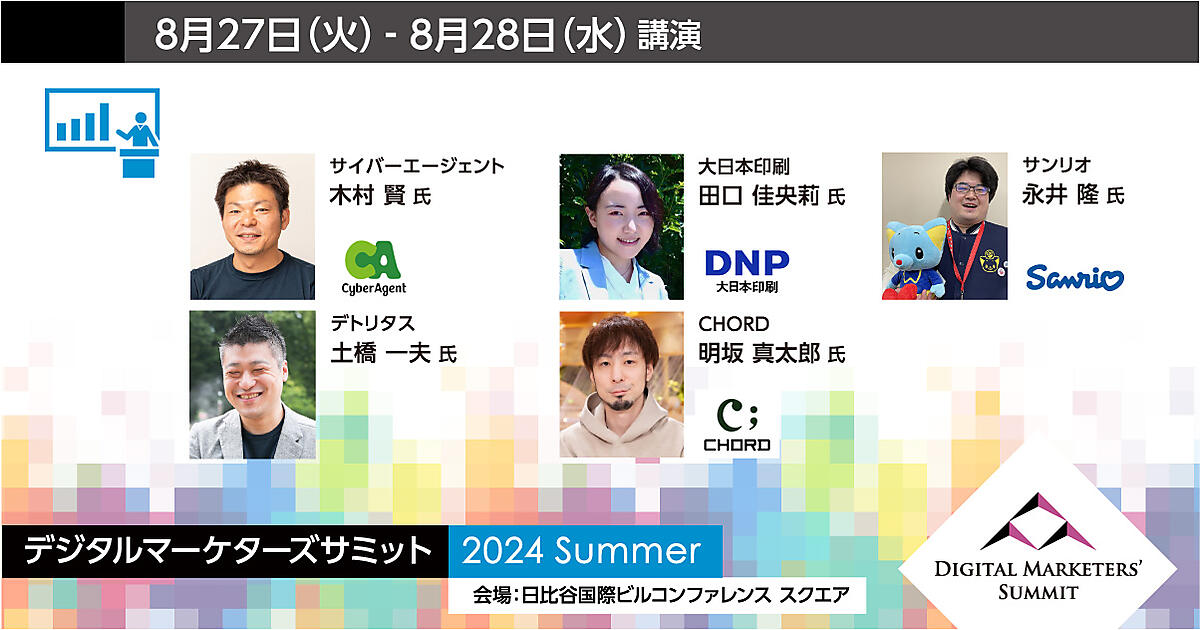 明治安田生命、サイバーエージェント、サンリオなどが登壇する「デジタルマーケターズサミット 2024 Summer」を8月27日(火)、8月28日(水)に開催します。