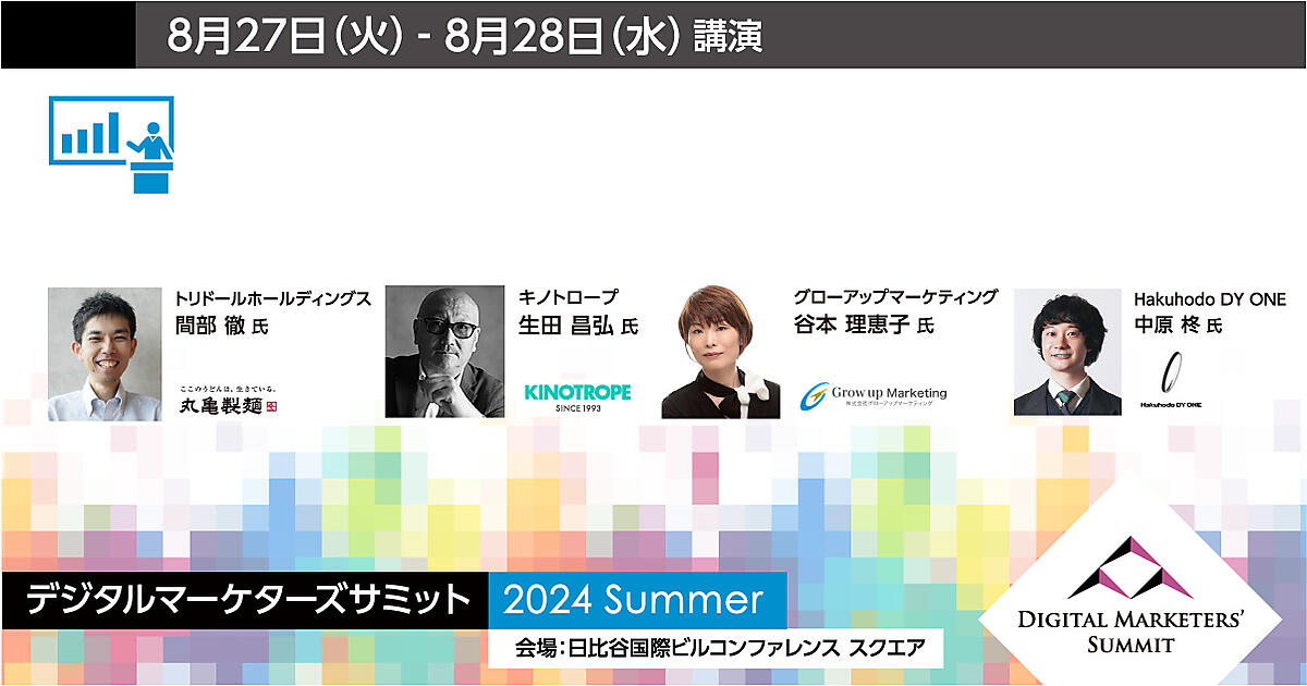 明治安田生命、サイバーエージェント、サンリオなどが登壇する「デジタルマーケターズサミット 2024 Summer」を8月27日(火)、8月28日(水)に開催します。