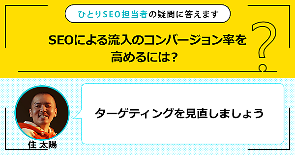 SEO担当者の質問に、SEOのエキスパートである住 太陽さんが実践的で有効な解決法を答えます。今回の質問は「SEOによる流入のコンバージョン率を高めるには?」です。