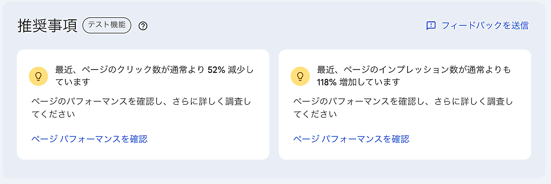 Search Consoleに「推奨事項」という機能が試験導入された。「推奨事項」は、グーグル検索での表示機会を改善するための最適化案(要はSEO施策)を提供する。