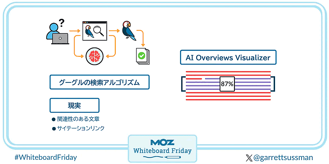 今回のホワイトボード・フライデーでは、グーグルの「AIによる概要(AI Overview)」や、この新しい超強力なAIによる検索結果のスニペットのためにSEO戦略を最適化する方法について、ギャレット・サスマン氏が解説する。