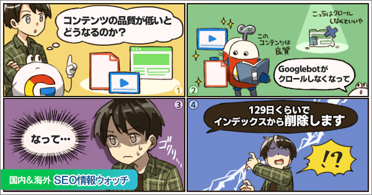 グーグルが再クロールしない状態が129日間続くと、URLはインデックスから消える……検索カンファレンスで共有された10万URLの調査データからコンテンツの品質を考えよう。