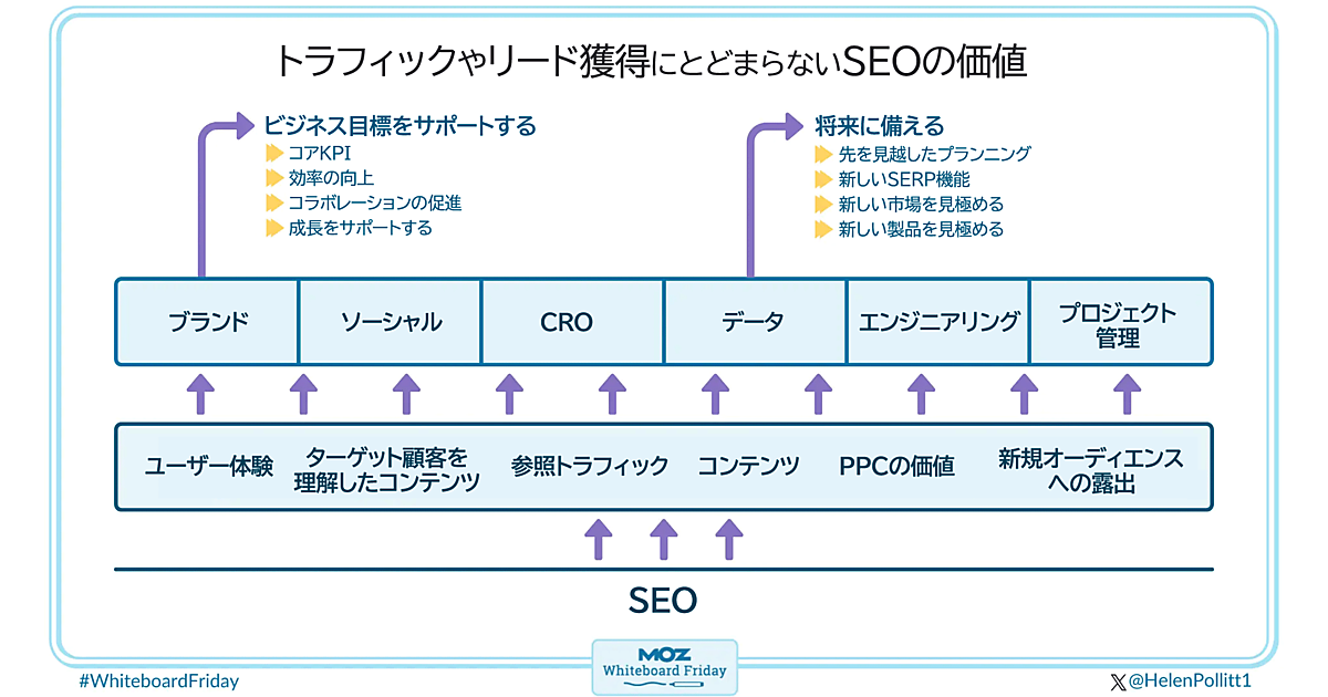 前編の記事では、SEOが単に「検索エンジンからのトラフィックを増やす」だけでなく、実際にはサイトやその他のユーザー接点において、はるかに広い範囲で価値をもたらしていることを考察した。