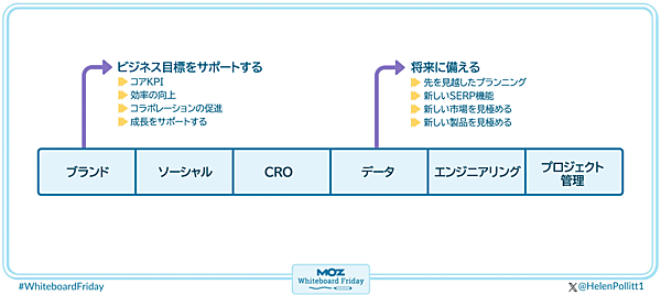 SEOが多くの異なるマーケティングチャネルやウェブサイトのさまざまな側面に関わる場合、私たちは常にそれらのチームをまとめようとする。大きなプロジェクトを中心になって進めることも多く、こうしたコラボレーションによってビジネスをはるかに効率化できる。SEOは決してサイロ化された状態では機能しないし、私たちはそのことを認識しつつ、この業界で成長してきた。だからこそ、常に他のチームをまとめようとしている。