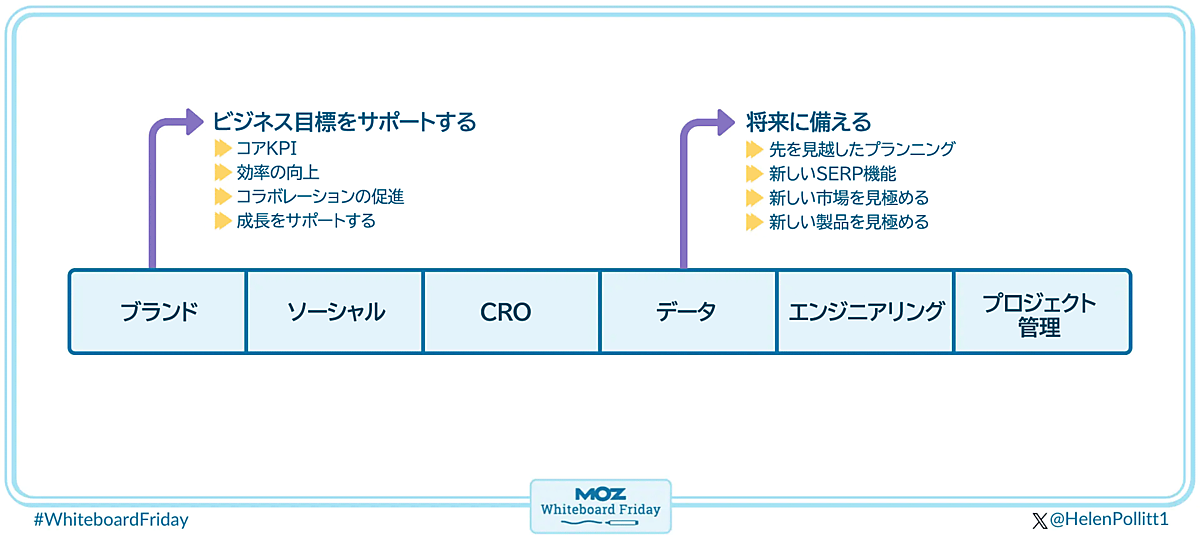 トラフィックやリードの獲得にとどまらないSEOの価値を伝えようとしている場合、常に鍵となるのは、SEOが他のマーケティングチャネルだけでなく会社全体に与える影響とその範囲の大きさについて説明することだ。