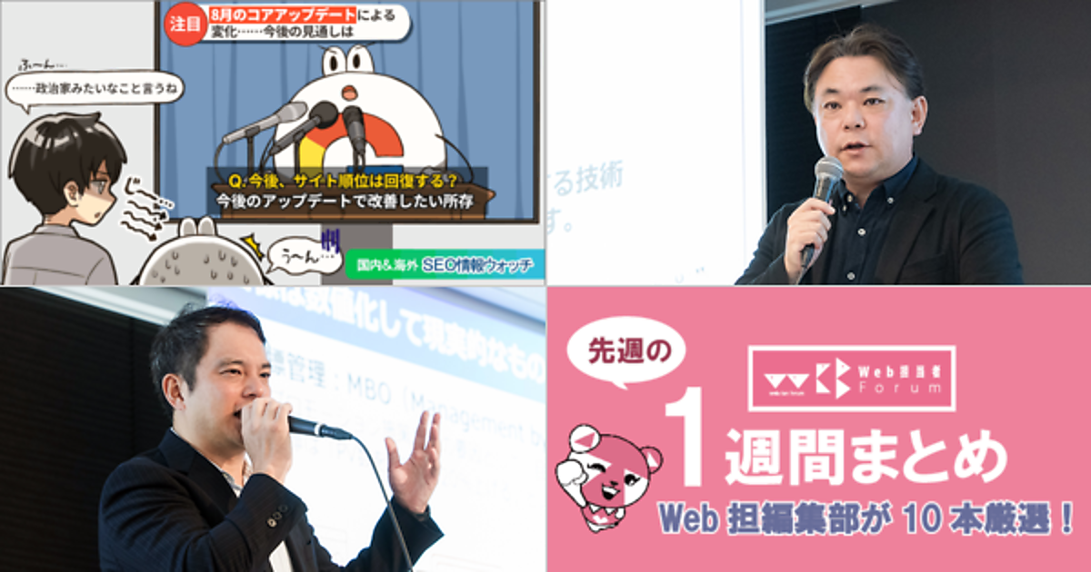 Web 担当者 Forum に掲載された情報を毎週一度、まとめてご紹介するこのコーナー、今回は解説記事 5 本とニュース記事 5 本です。