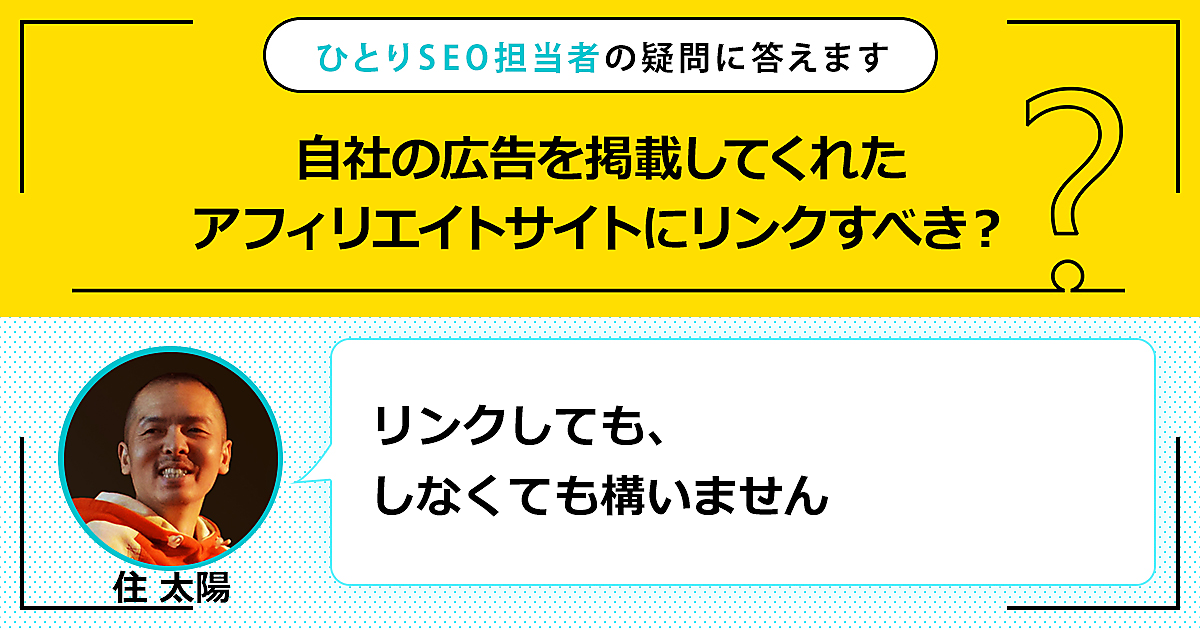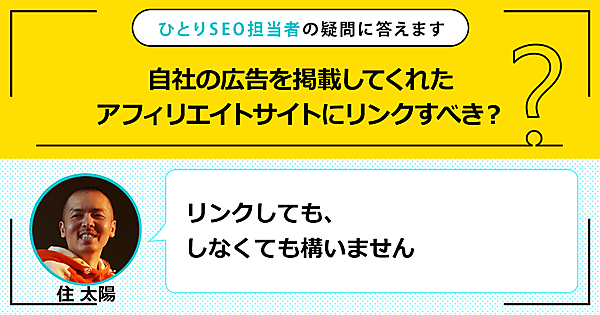 ひとりで頑張るSEO担当者さんの悩みに答える本連載。今回の質問は「自社の広告を掲載してくれた“アフィリエイトサイト”にリンクすべき?」です。この回答は「リンクしても、しなくても構いません」です。