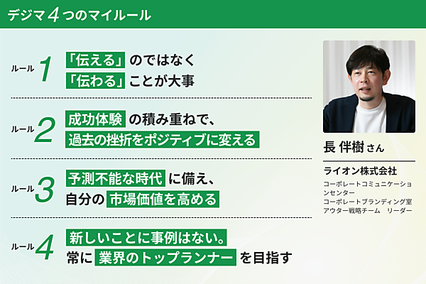 ライオンでコーポレートブランディングを担当する長(ちょう)氏も、若手時代にそんな壁と直面してきた。長氏はその壁をどう乗り越えたのだろうか。