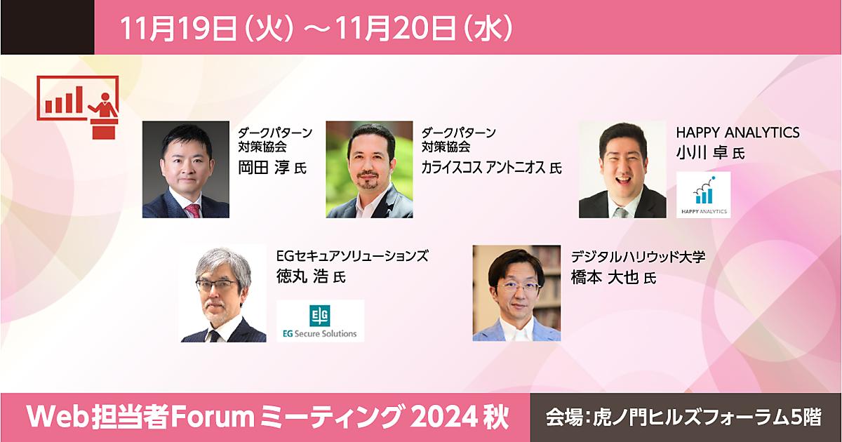 資生堂、ビックカメラ、セガなどが登壇する「Web担当者Forum ミーティング 2024 秋」を11月19日(火)、11月20日(水)に開催します。
