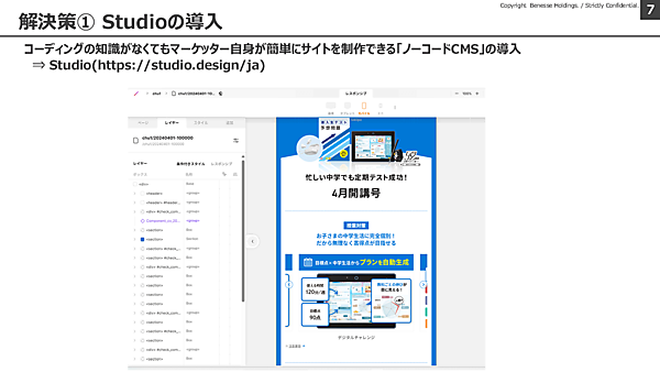 そこで導入されたのが、ノーコードでWebサイトを構築できる「Studio」だ。