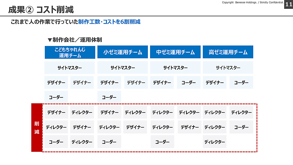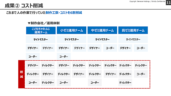 それまで大人数で行っていた制作会社の運用体制をスリム化したことによって、コストを約6割も削減できたという。