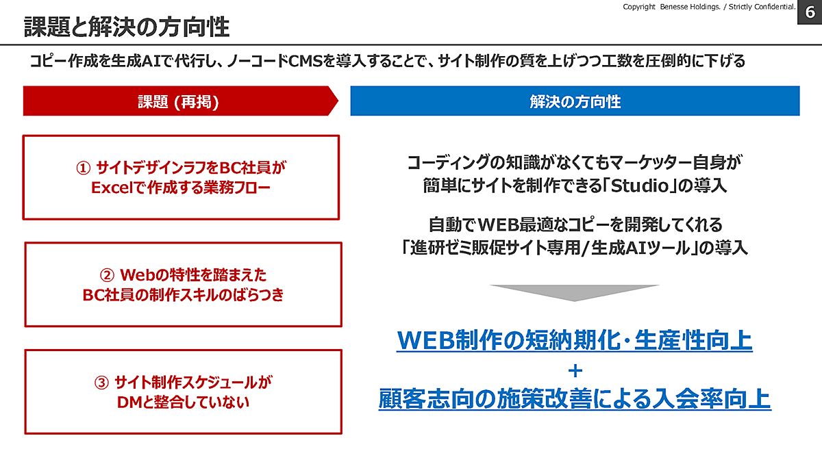3つの課題が顕在化していた進研ゼミの販促サイト