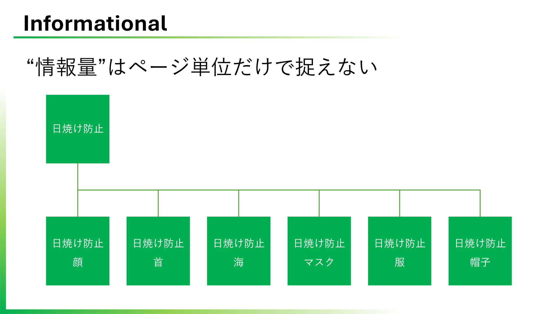 ページ内の情報量を増やすことで、検索者がほしい情報を漏れなく入れられる。これは、トピックを伝える方策として機能しているが、情報量だけではなく、“ベクトル”も意識すべきという。