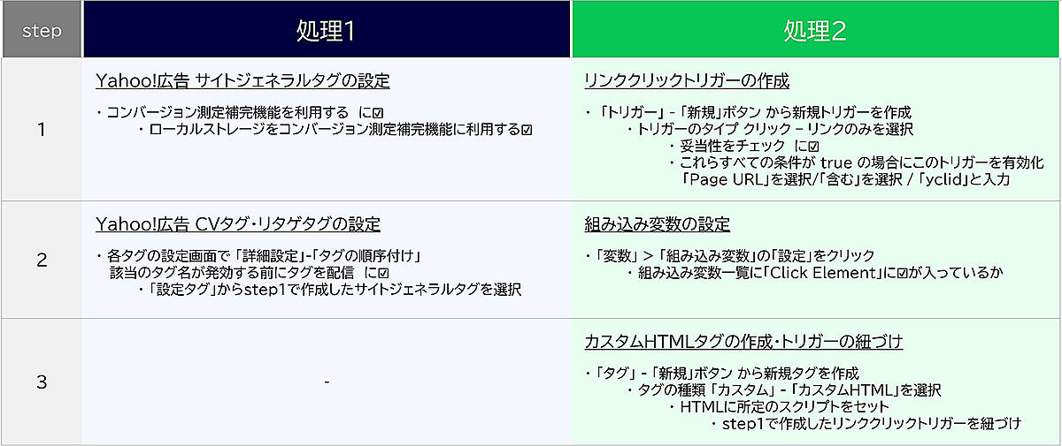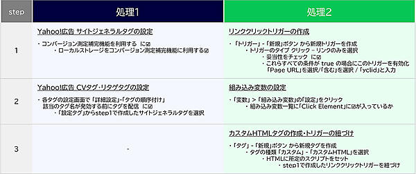 処理①では、まず「サイトジェネラルタグ」の設定を行う。サイトジェネラルタグは、ユーザーの行動(クリック数、CV、ページ滞在時間など)を詳細に追跡し、それによって広告キャンペーンのパフォーマンスを向上させ、より効果的な広告配信を可能にするものだ。