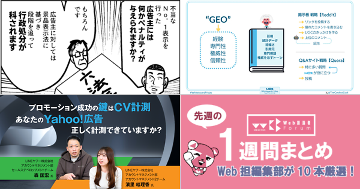 Web 担当者 Forum に掲載された情報を毎週一度、まとめてご紹介するこのコーナー、今回は解説記事 5 本とニュース記事 5 本です。