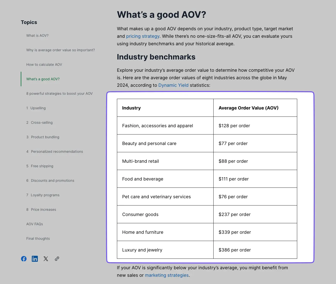 平均注文額についてのTOFU記事にある表要素の例を次に示す。