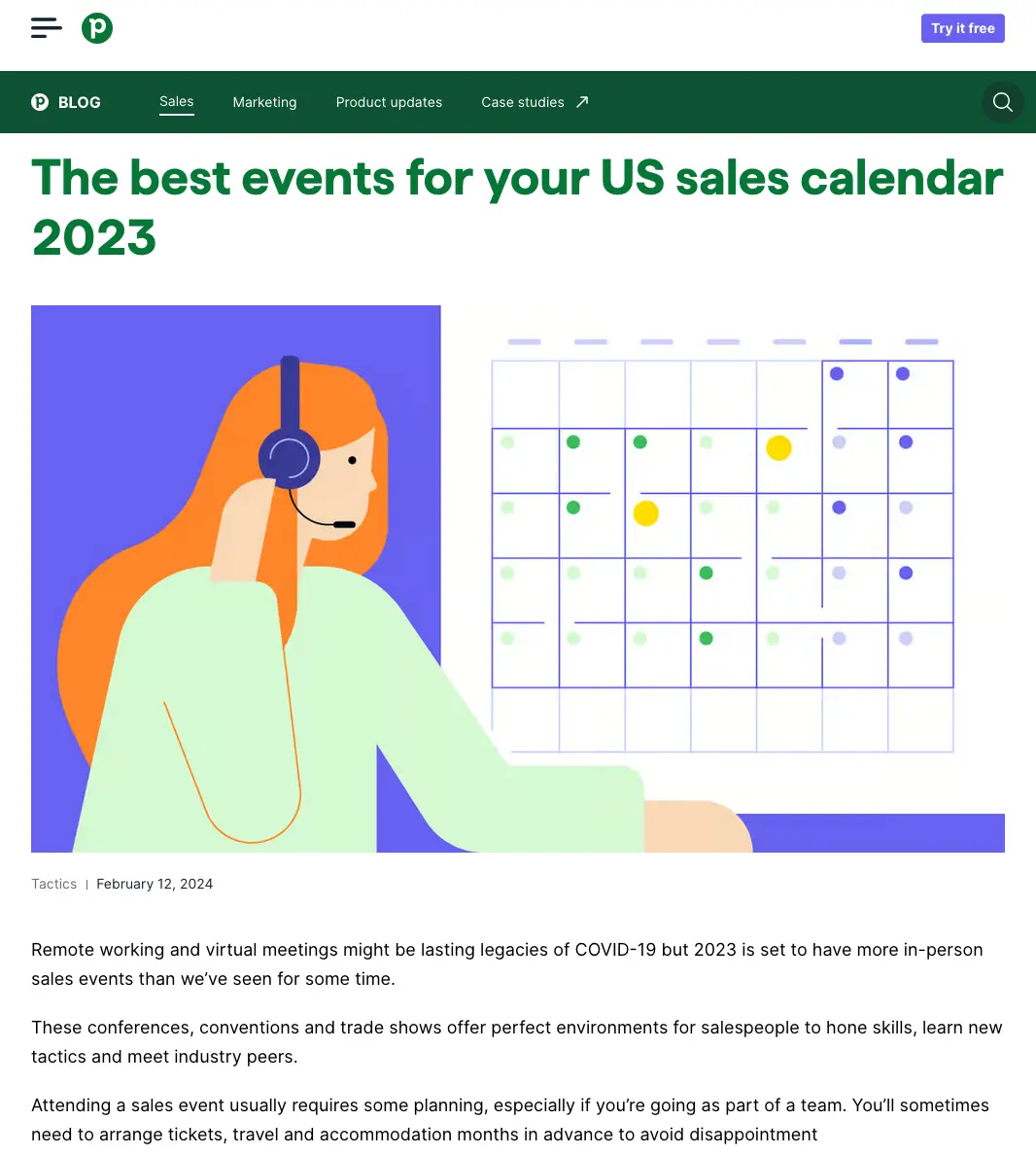 たとえば、僕たちはPipedriveの販売カレンダー記事を新しいイベント情報とトーンで更新し、ユーザー体験とSERPの表示順位を改善した。