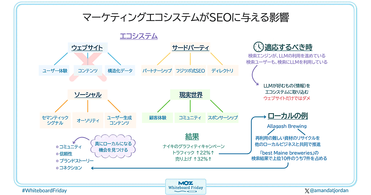 しかし、「ソーシャル」「サードパーティ」「現実世界」などについては、それほど時間をかけていないだろう。これらはSEOに影響を与え得るものであり、マーケティングエコシステムの各要素や、それらがLLMやAIとどう関わってくるかにも関連している。