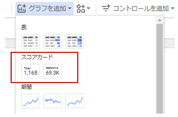 (1)「グラフを追加」から「スコアカード」を選択します。