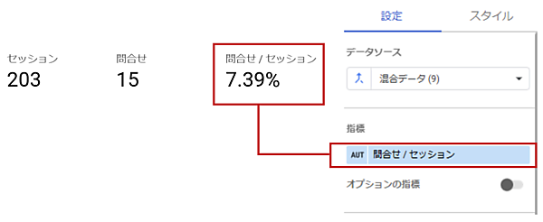 これで「問合せ/セッション」のコンバージョン率を示す指標を作成できます。