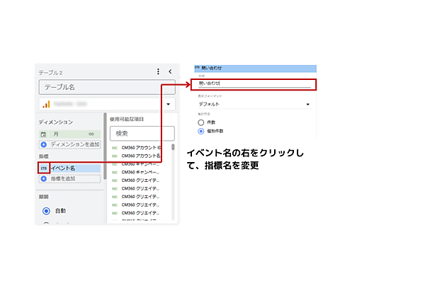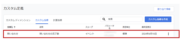 (3)最後にイベント名の指標を「問い合わせ」に変更します。