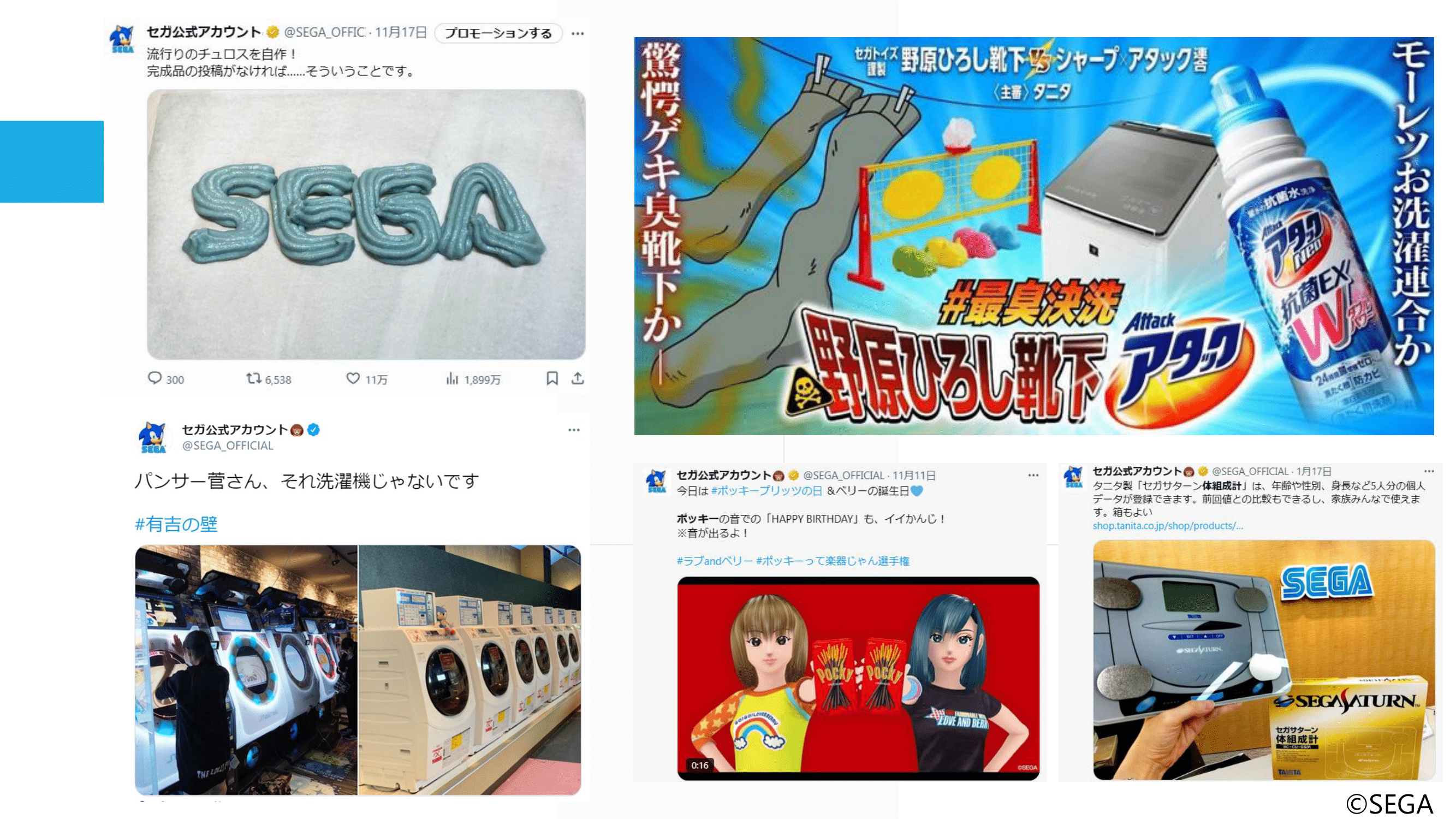 ここからは、セガの公式Xアカウントが実際にどのような投稿をしているか、事例とともに紹介する。