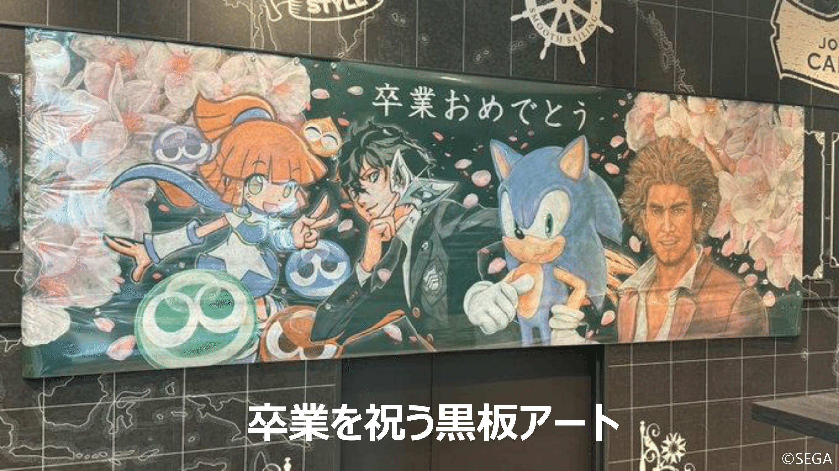 卒業式シーズンに合わせ、卒業生全般に向けた黒板アートを作成。黒板アートクリエイターが人気キャラクターを描く過程を動画で公開したところ、多くの反応があった。