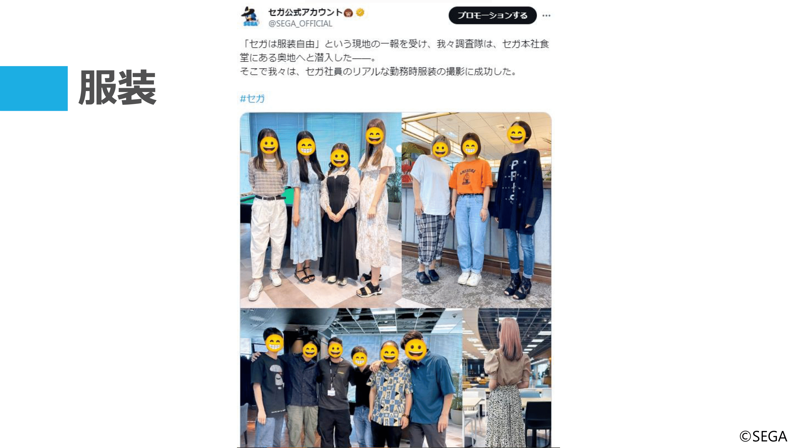 実際のX投稿内容を紹介! 「服装」「#今日のセガ社員」など