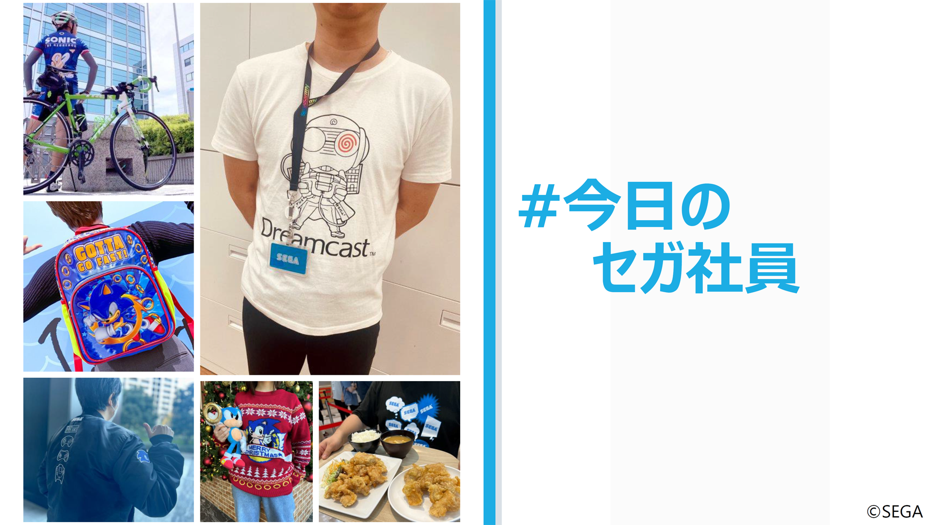 最後に、山田氏お気に入りの企画である「#今日のセガ社員」。セガ関連グッズに身を包んだ社員を見かけたら、写真を撮ってXにハッシュタグ付きで投稿している。社員の顔は写さないことが多いが、メディア露出の多い一部の開発者や経営陣については、その限りでない。