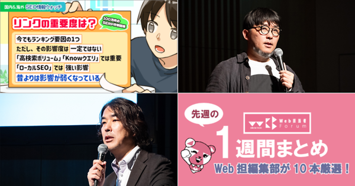 Web 担当者 Forum に掲載された情報を毎週一度、まとめてご紹介するこのコーナー、今回は解説記事 5 本とニュース記事 5 本です。