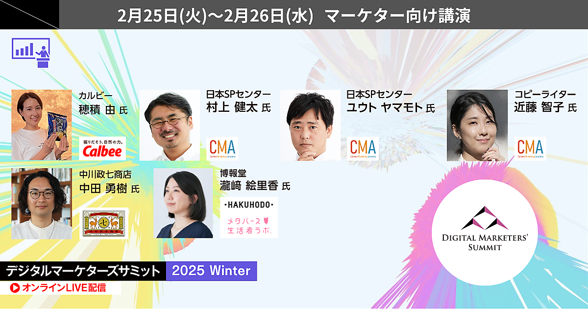 キャノン、カルビー、博報堂などが登壇する「デジタルマーケターズサミット 2025 Winter」を2月25日(火)、2月26日(水)に開催します。