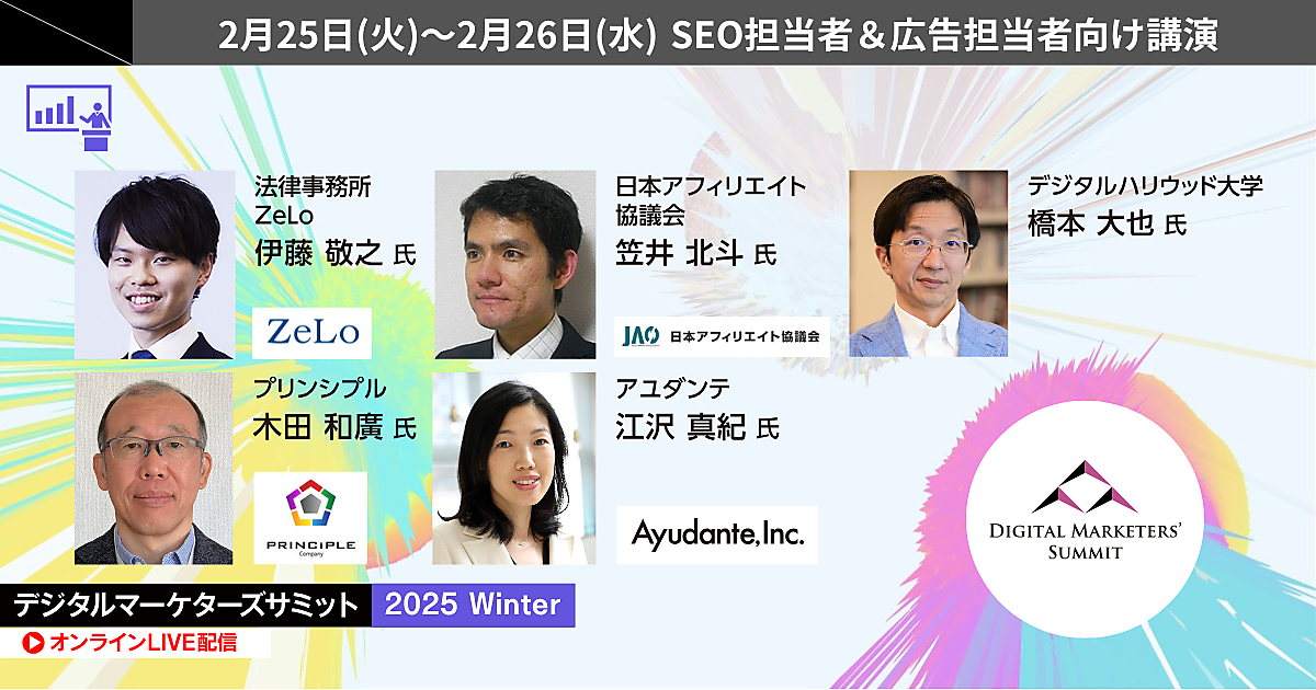 キャノン、カルビー、博報堂などが登壇する「デジタルマーケターズサミット 2025 Winter」を2月25日(火)、2月26日(水)に開催します。