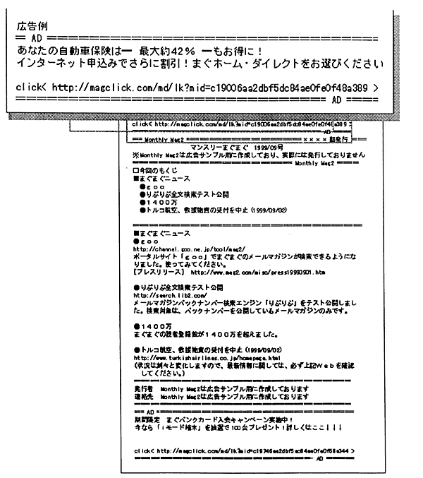 エルゴブレインズが運営する「DEMail」は、オプトインメール(ユーザー登録型の1社スポンサーによるダイレクトメール)の最大手でした。一方、メルマガ配信の「まぐまぐ」が発行する「ウィークリーまぐまぐ」は、配信メルマガを紹介する媒体として広く活用されていました。これら2つの媒体は非常に効果が高く、広告が飛ぶように売れたため、CCIやDACも次第に注力していきました。