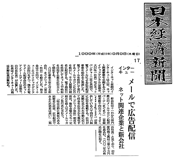 (出典:1999年9月9日の日本経済新聞の記事。加藤さん所蔵)