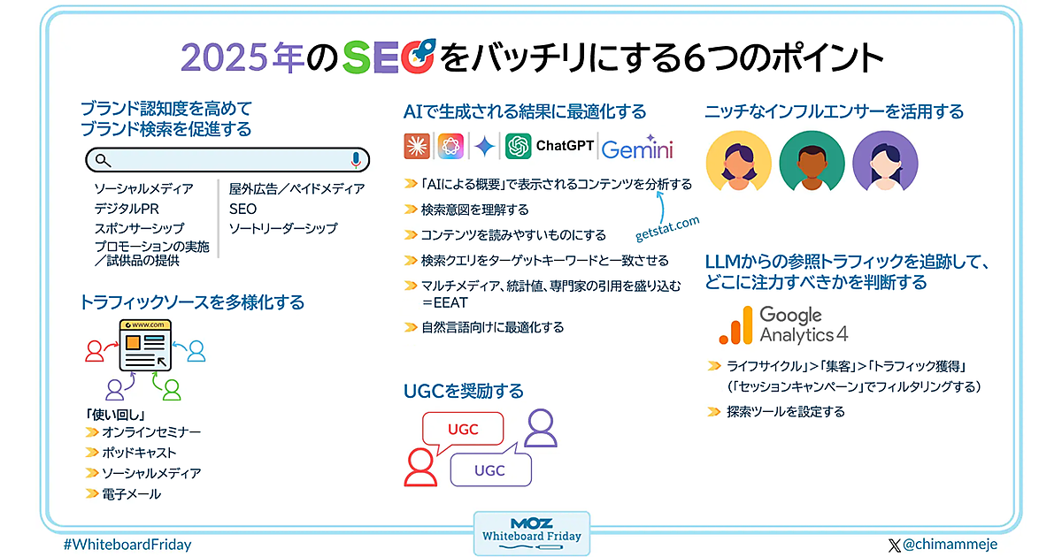 2025年にSEOの成果を最大限高めるにはどのような戦略を取るべきか思案している人もいるかもしれない。その疑問にお答えしよう! 今回のホワイトボード・フライデーでは、ブランド認知度の向上やトラフィックソースの多様化など、2025年に役立つSEOのヒント6選をチマ・メジェが紹介する。