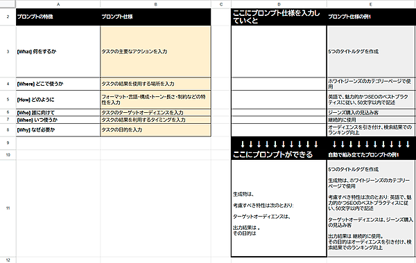フレームワークに沿って生成AIに対して効果的なプロンプトを自動生成するスプレッドシート(無料で利用可能、日本語化済み)