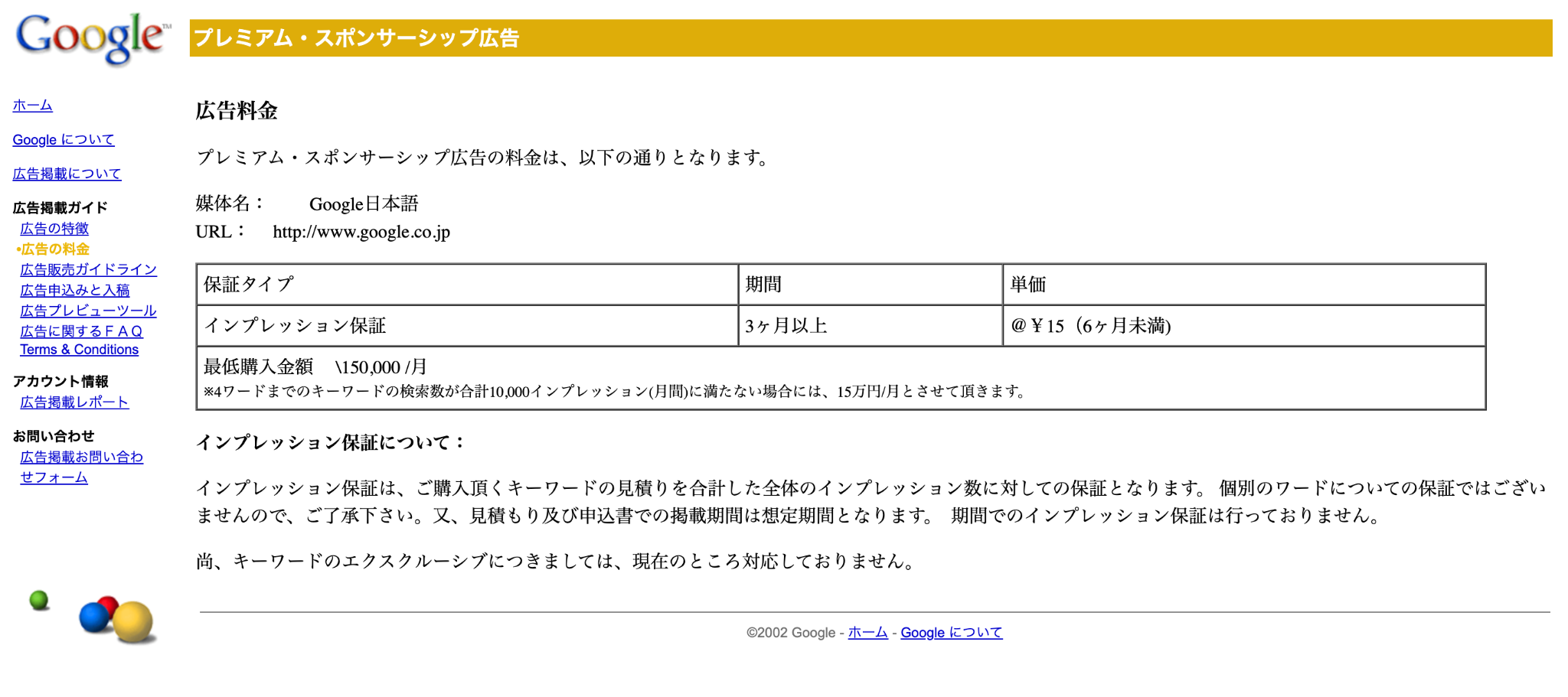 Google最初の広告商品「プレミアム・スポンサーシップ広告」