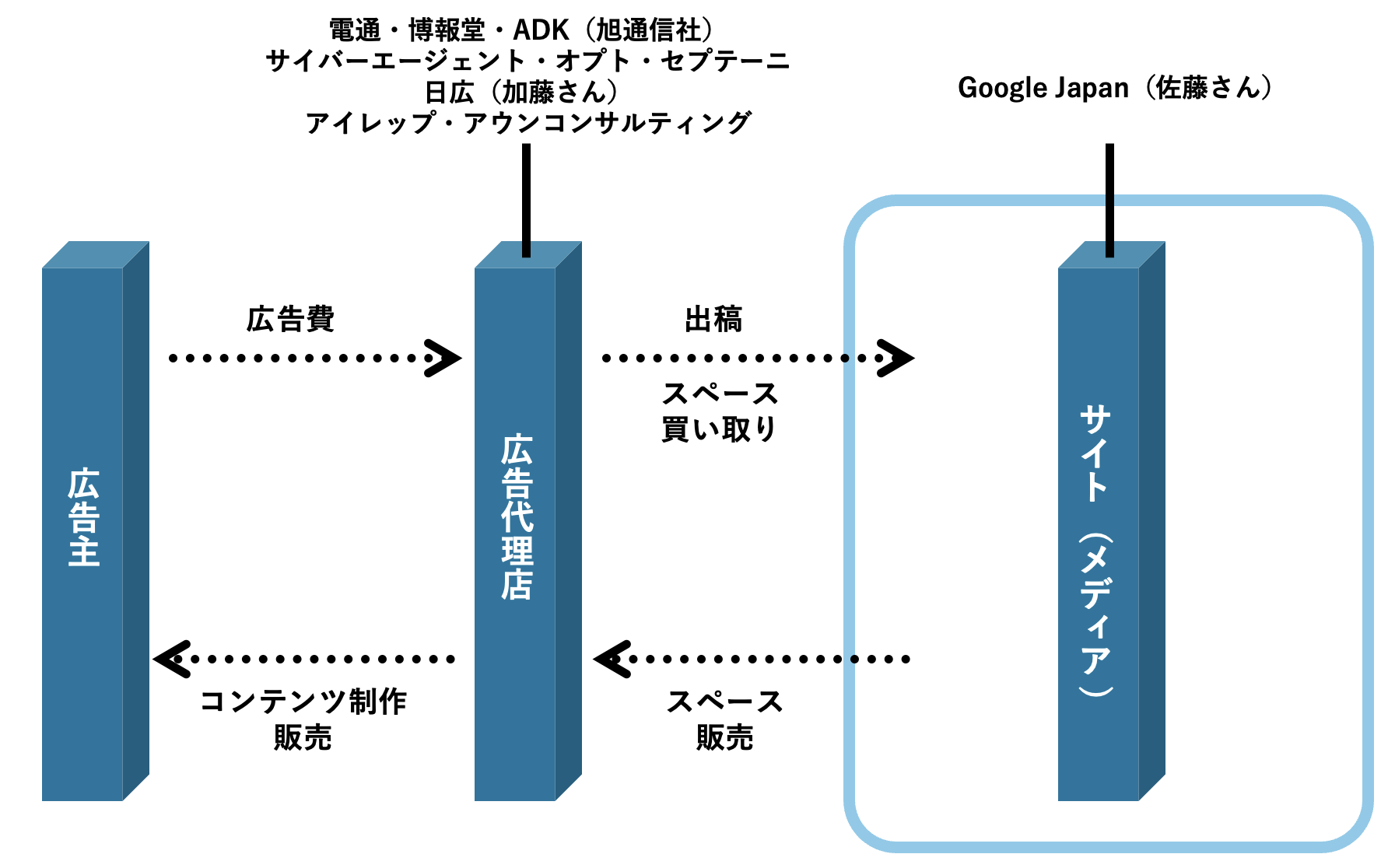 佐藤: 第10話で角くんにメディアレップの忙しさを語ってもらいましたが、インターネット広告の種類や数が急増し、メディアレップが窓口となって広告枠を仲介するというビジネスモデルが限界に近づいていました。