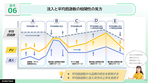 このように、平均回遊数の推移から訪問者品質の変化を察知できます。PVと流入は基本的に連動するため、平均回遊数もあわせて確認することが重要です(内村氏)