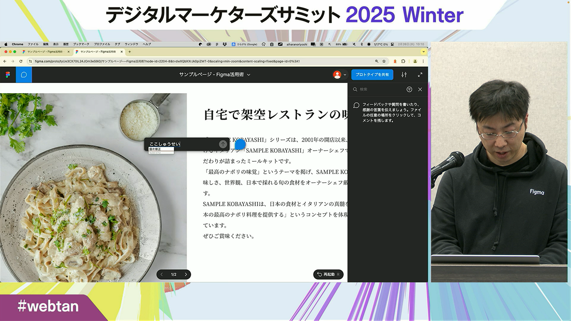 Figmaのコラボレーション関連機能について、相原氏が解説していった。