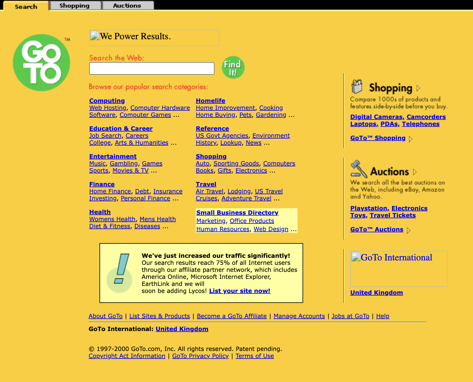 GoTo.comは、ユーザーを増やすには広告費や時間がかかりすぎると判断したのでしょう。
