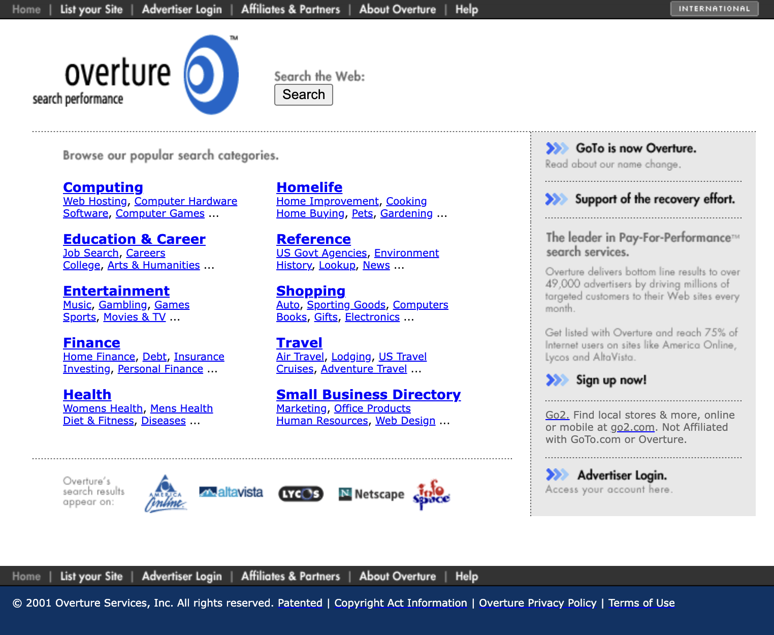 「GoTo.com」がBtoBにシフトし、「Overture」を設立