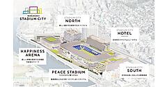 約7.5ヘクタール(東京ドーム1.5個分)の巨大施設内に、サッカースタジアム、アリーナ、ホテル、商業施設、オフィスビルが入る規格外の複合施設として長崎市内に誕生した長崎スタジアムシティ。総事業費用は約1,000億円にのぼる。