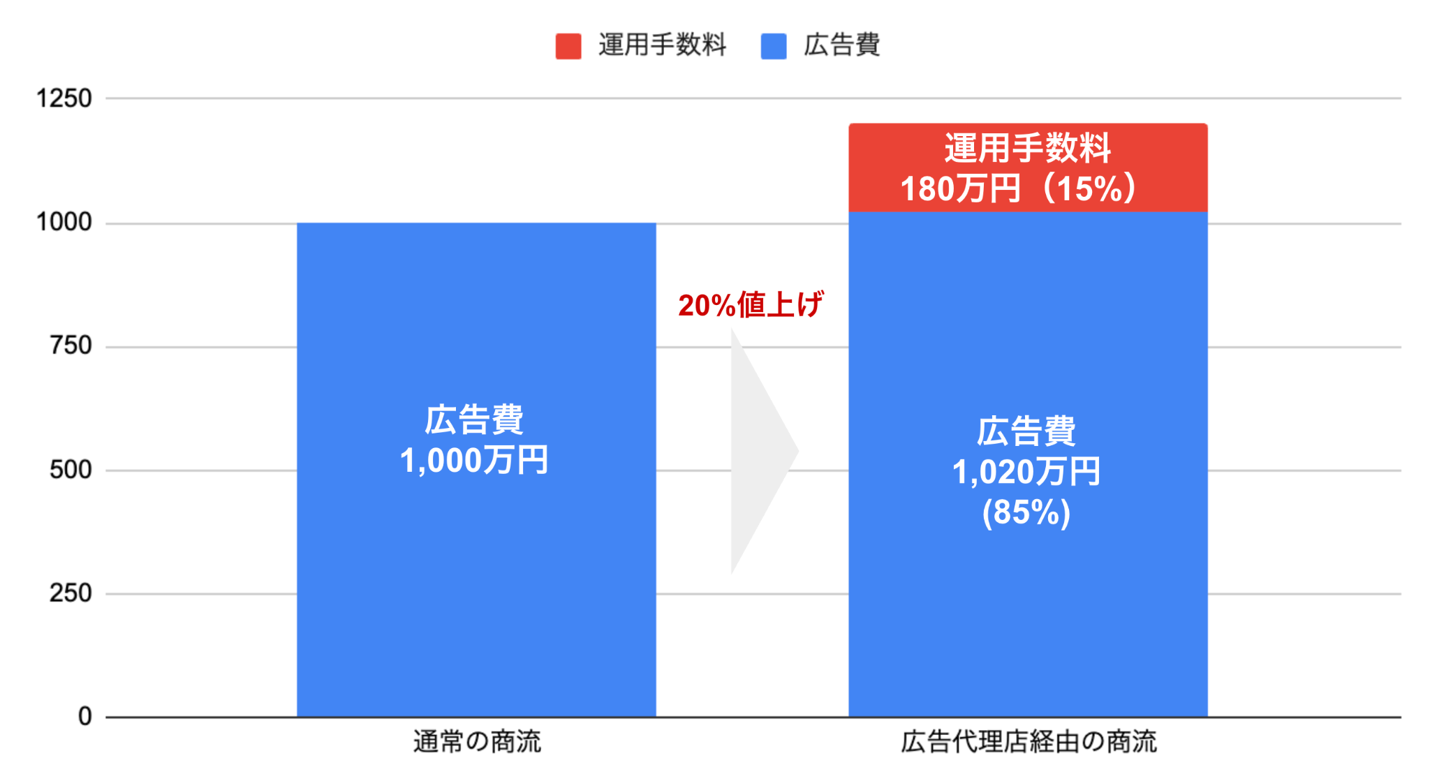 「マネージメントフィー」広告代理店経由の広告費は20%値上げ