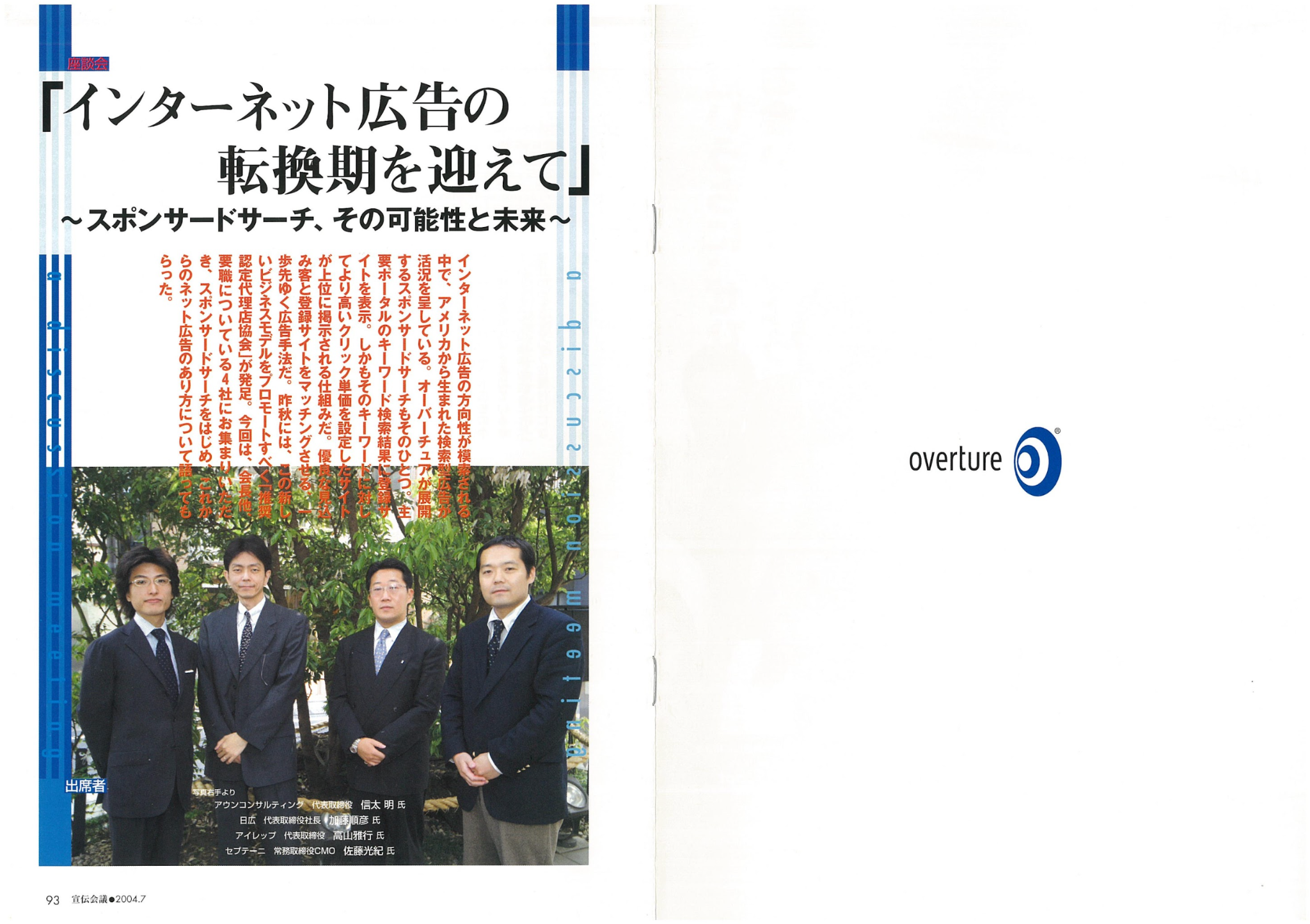 加藤: こうした流れの中で、2003年3月にOvertureの「推奨認定代理店協会」が発足し、鈴木さんの依頼で僕が初代会長に就任しました。最初の参加企業は、「アイレップ」「アウンコンサルティング」「オプト」「サイバーエージェント」「セプテーニ」「日広」の6社です。