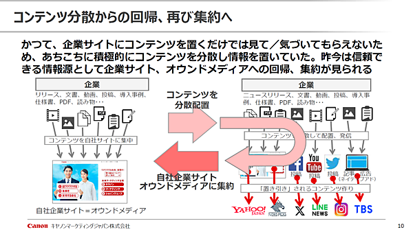 さまざまなプラットフォームに情報を分散させる「コンテンツ分散」から、自社サイトに情報集約へ回帰