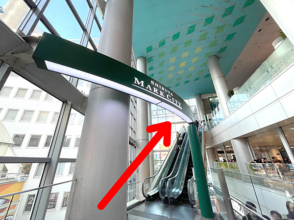 次に、京王井の頭線渋谷駅に直結する渋谷マークシティ(イーストモール1階)入口のエスカレーターを上ります。